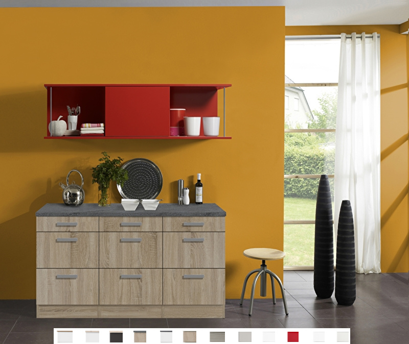 Kitchenette 150 cm met rood gekleurd schuif rek KT153-9-210